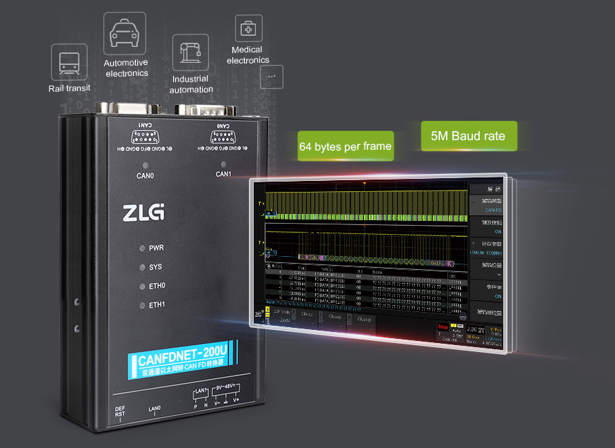 CANFDNET series products, which have been rigorously verified by six scientific research laboratories, are stable and reliable. At present, they have been widely applied in high-speed railway, automotive electronics, medical electronics and other occasions.