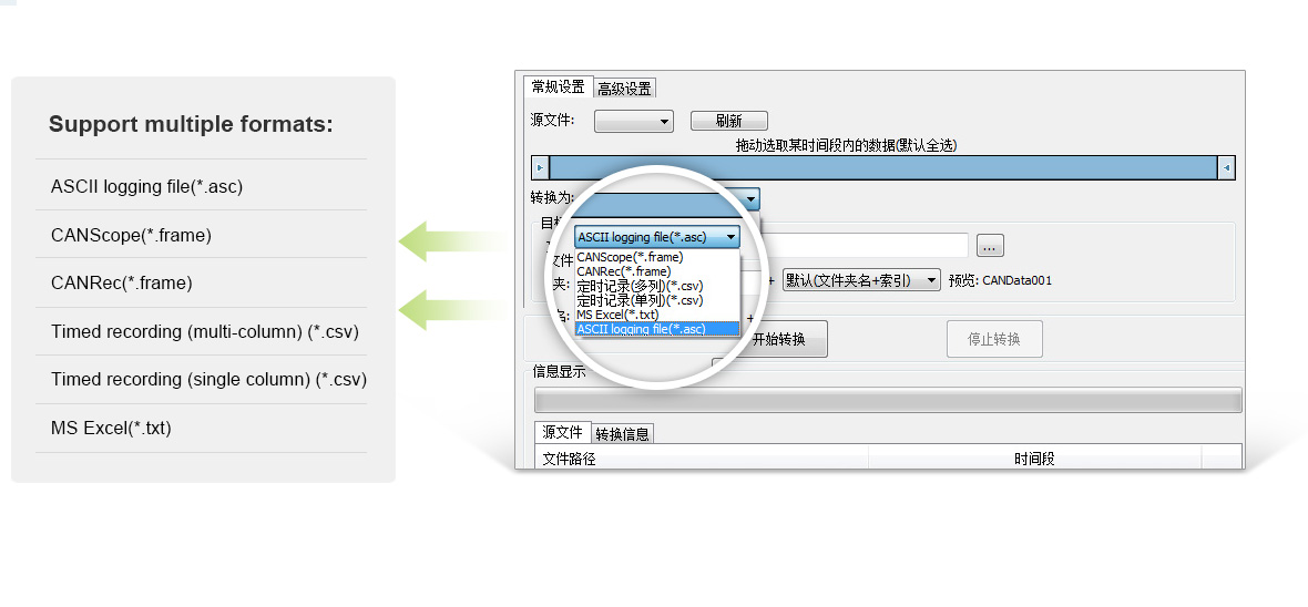 CANDTU configuration software can record automobile data more truly, objectively and comprehensively, and can also convert the recorded data into various software formats commonly used by users, facilitating users to analyze and evaluate the data offline using CANoe and CANScope.