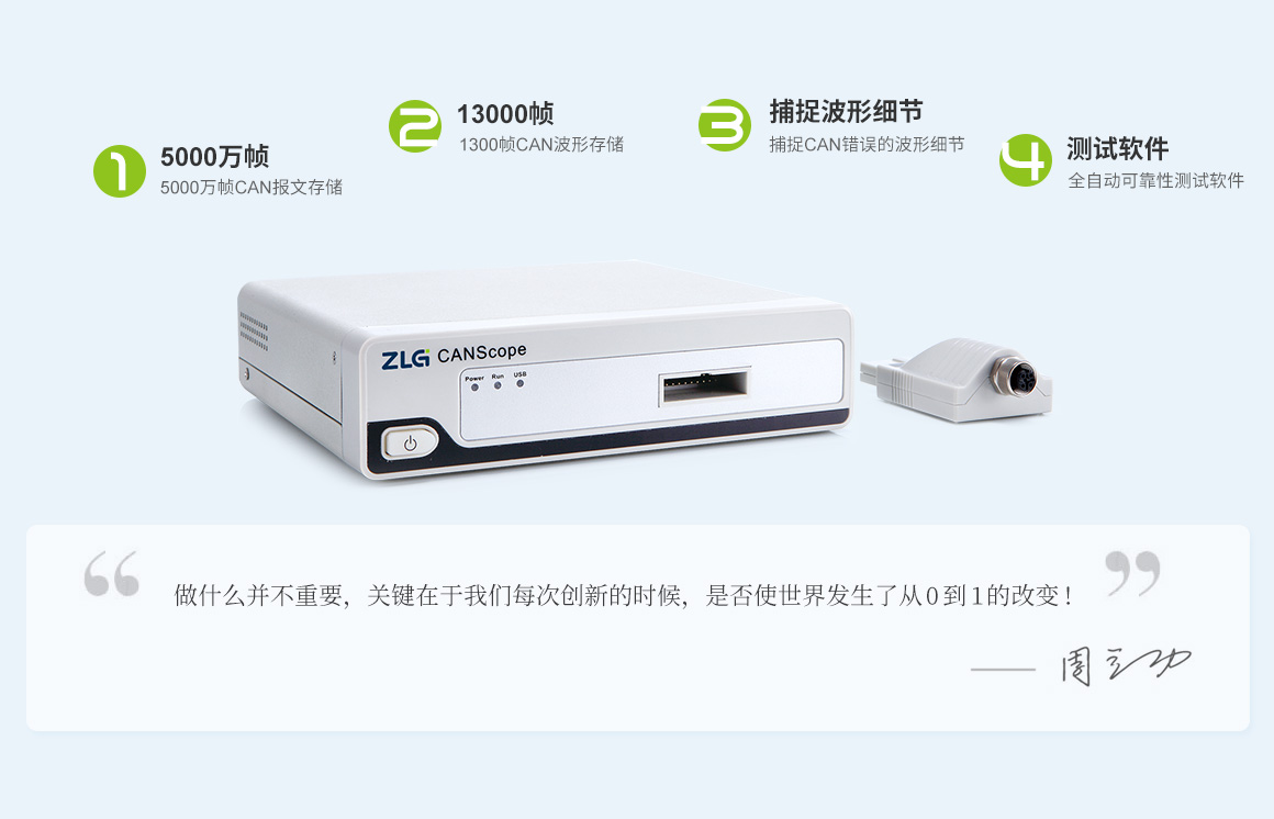 CANScope总线综合分析仪是一款综合性的CAN总线开发与测试的专业工具,集海量存储示波器、网络分析仪、误码率分析仪、协议分析仪及可靠性测试工具于一身,并把各种仪器有机的整合和关联;重新定义CAN总线的开发测试方法,可对CAN网络通信正确性、可靠性、合理性进行多角度全方位的评估;帮助用户快速定位故障节点,解决CAN总线应用的各种问题,是CAN总线开发测试的终极工具。