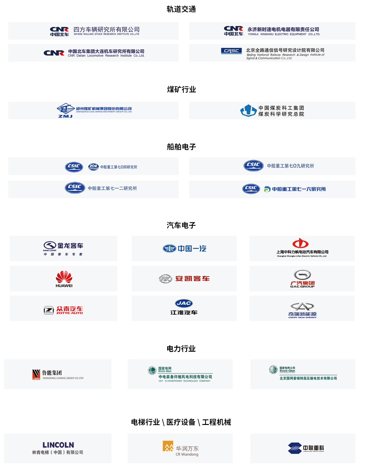 目前已经成功为高速铁路、地铁、医疗、工程机械、汽车电子、楼宇安防、电梯控制、煤矿安全等场合排除各种故障。