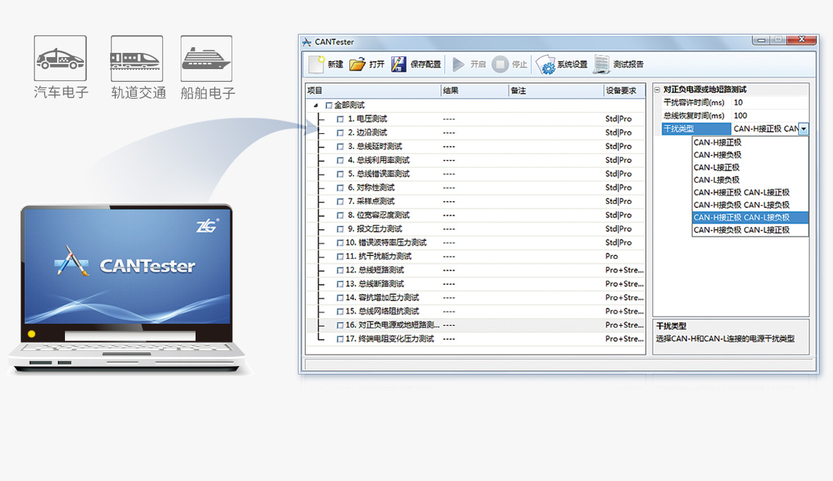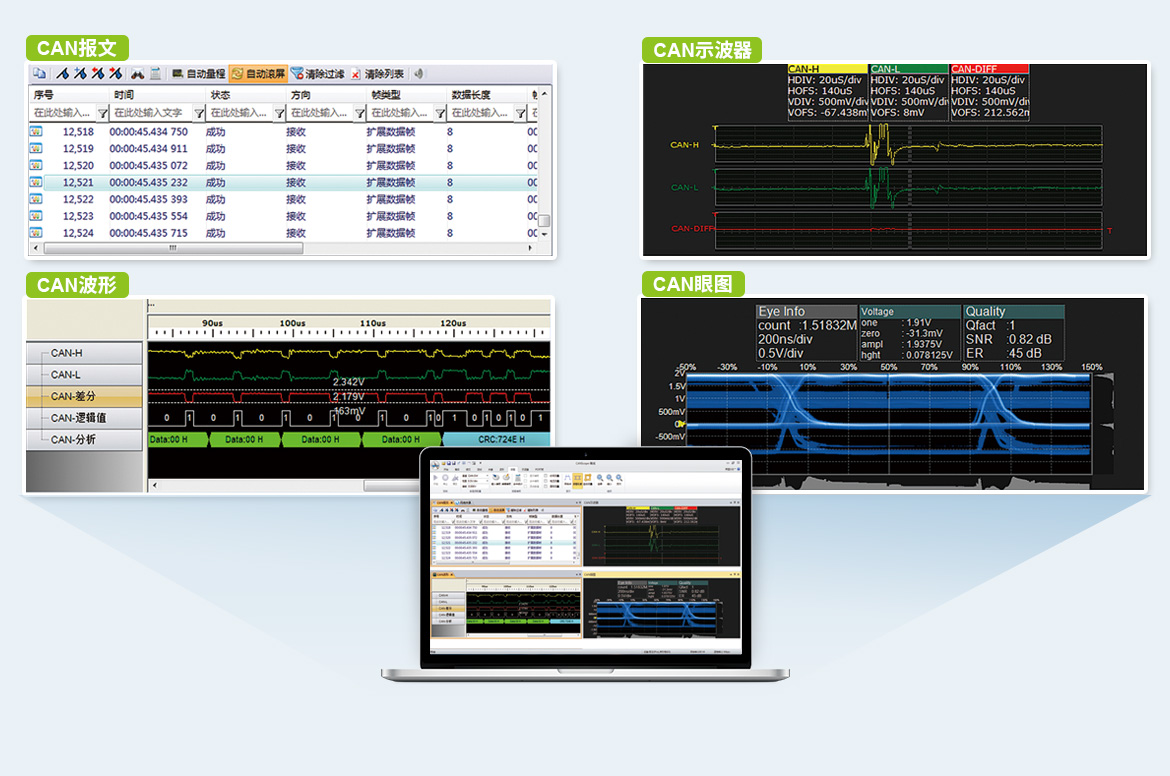 基于汽车电子、轨道交通、船舶电子等行业的要求,集成信号测试、故障定位、压力可靠性测试,一站式解决CAN 的所有问题。
