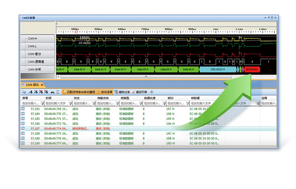 独特的数据波形同步接收+对应查看方式,轻松找到故障原因