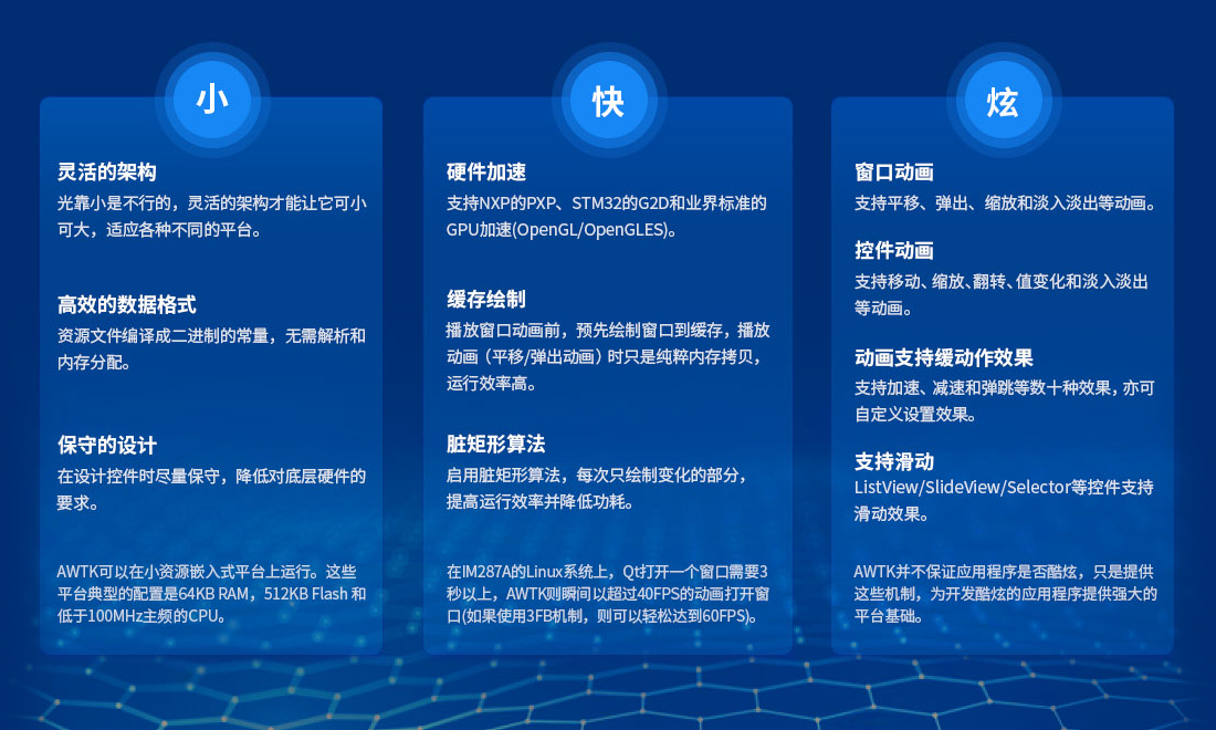 AWTK 兼具emWin的小巧高效、TouchGFX的酷炫、Qt的多平台等其他GUI框架的优点。