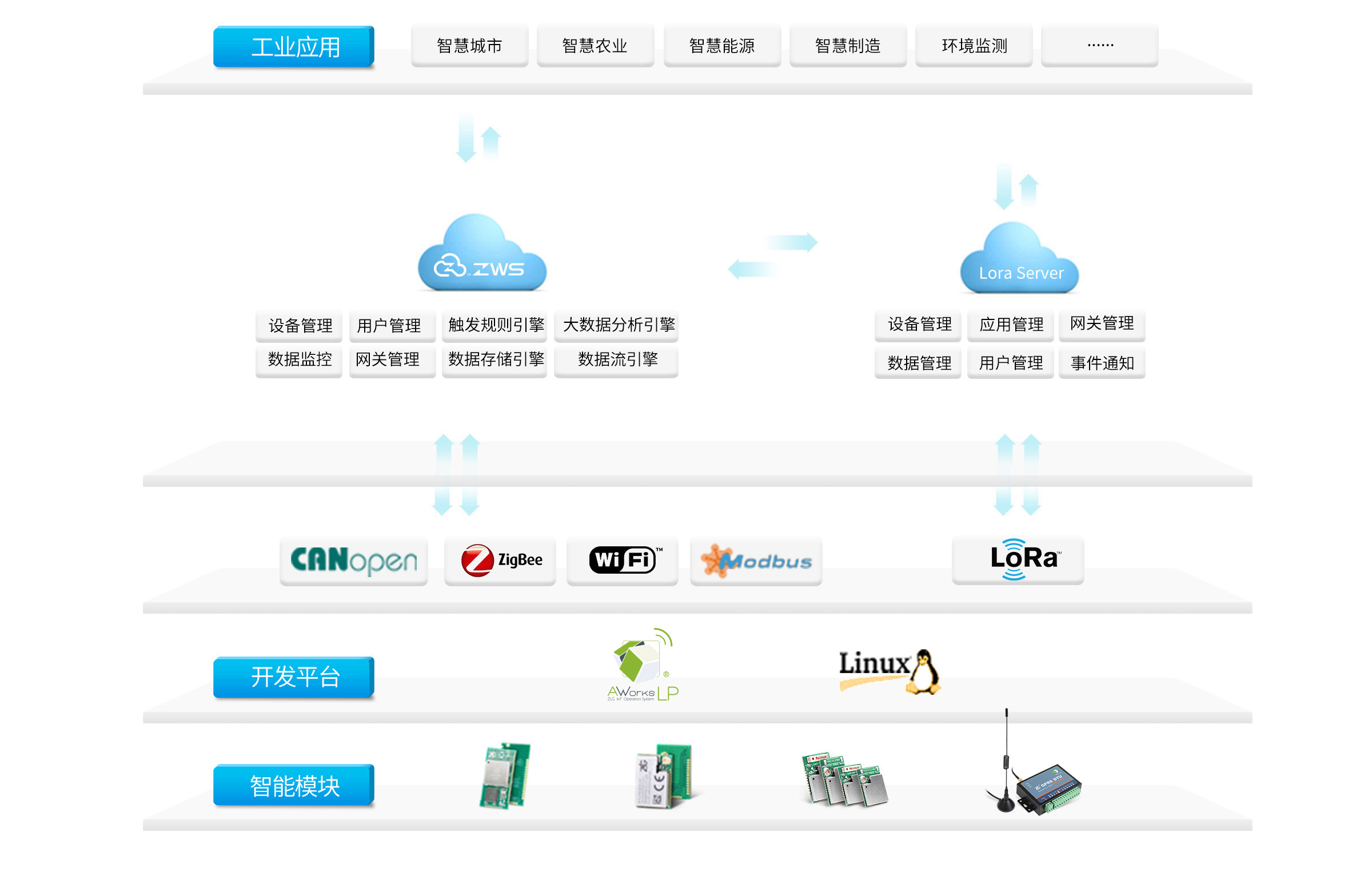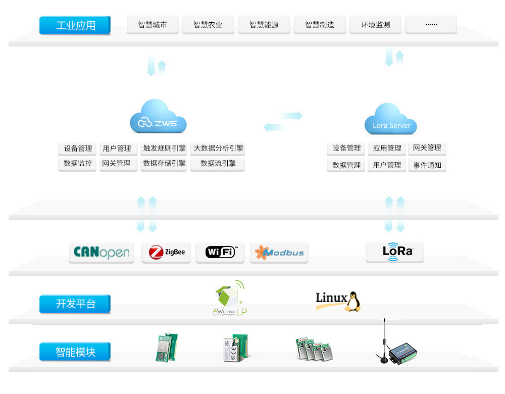 致远电子的愿景是成为工业物联网生态系统领导企业,采用“芯片+AWorksOS开发平台”设计高附加值的模块、板卡和高端测量仪器,通过有线和无线接口,接入ZWS IoT-PaaS云端,实现大数据处理,构成工业互联网生态系统。ZWS IoT-PaaS云平台支持多种协议的设备快速接入,支持数据透传转发以及完善的二次开发包,支持全私有化部署,并提供功能丰富的后台MIS系统进行设备统一管理,为客户的核心需求提供一站式的解决方案。