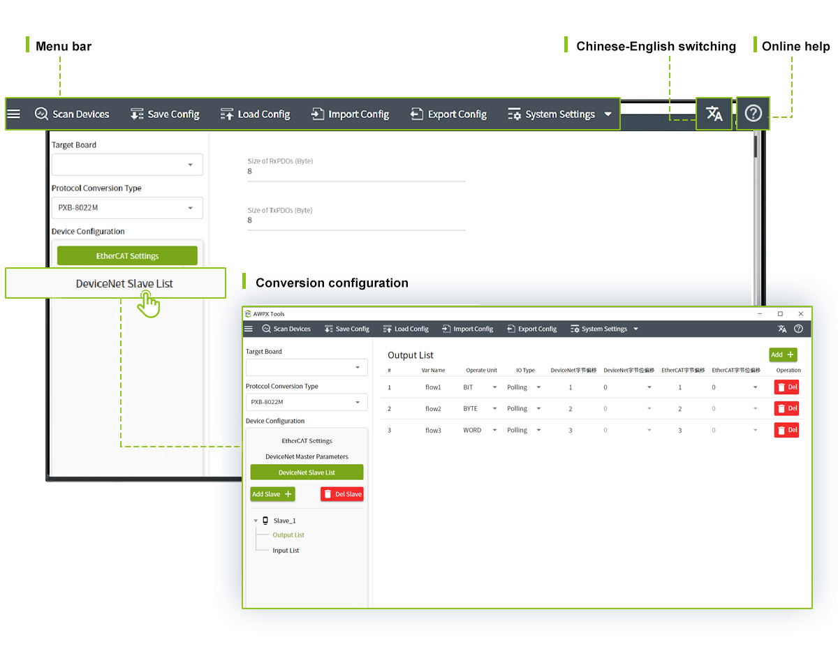 The PXB series Gateways & protocol converters is configured by the AWPX Tools software (“AWPX”). The interface is simple and easy to use, and online documents can be reviewed in time. You can get started quickly.