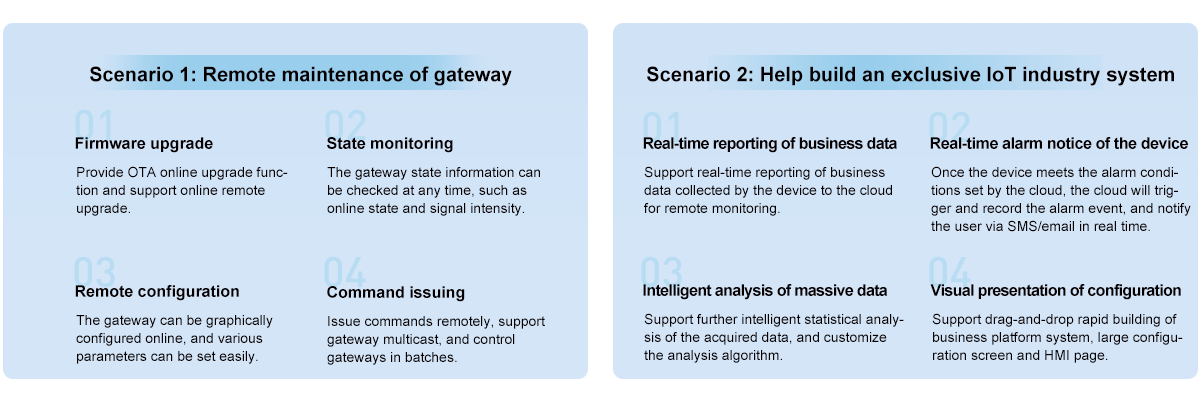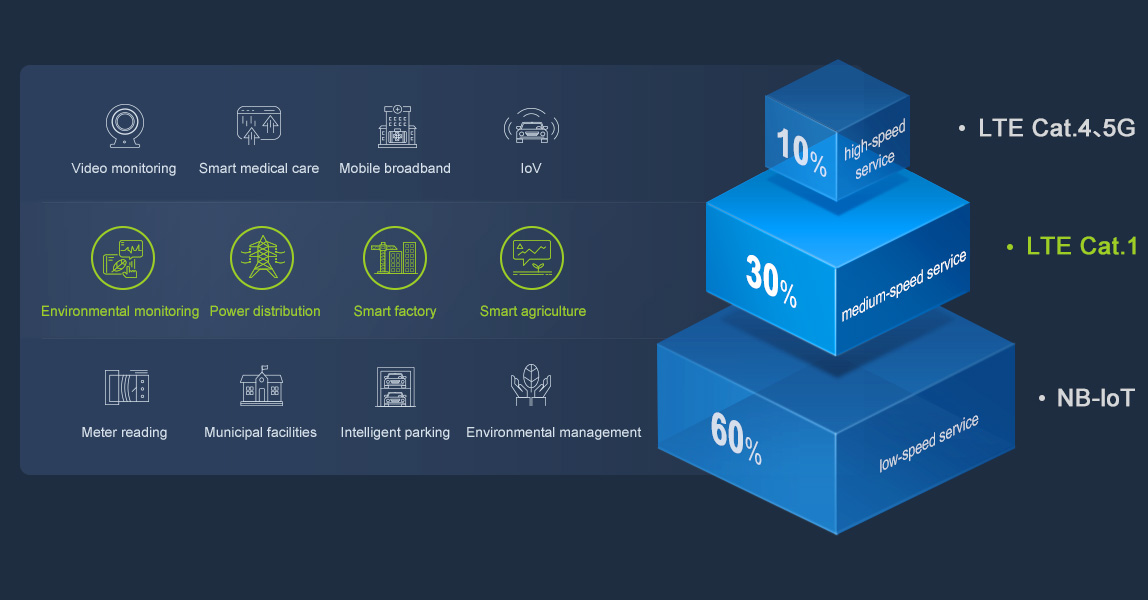 CATCOM-100 is an industrial-grade intelligent network terminal, which can quickly realize equipment networking through such interfaces as RS-485. The terminal adopts the communication standard of Cat.1, which supports the communication rate of 5Mbps uplink and 10Mbps downlink at the highest and shares the base station with the Cat.4(LTE 4G) network to ensure the signal coverage. CATCOM-100 is suitable for environmental monitoring, power distribution, smart factories, smart agriculture and other application scenarios.