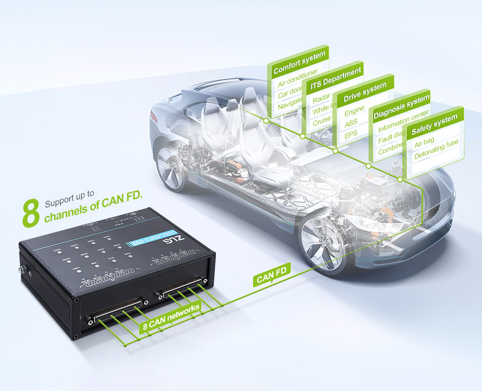 With its comprehensive upper computer software and excellent multi-channel concurrent testing capabilities USBCANFD-800U is widely applied in R&D and testing fields such as automobile parts, power batteries, vehicle E/E architecture, and automatic driving.