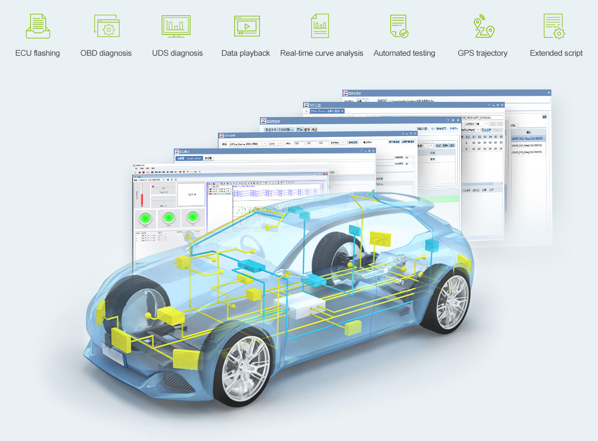 Users can directly load the secondary development library of UDS/OBDII/15765 and other automotive electronic protocols to assist in the testing and maintenance of parts.