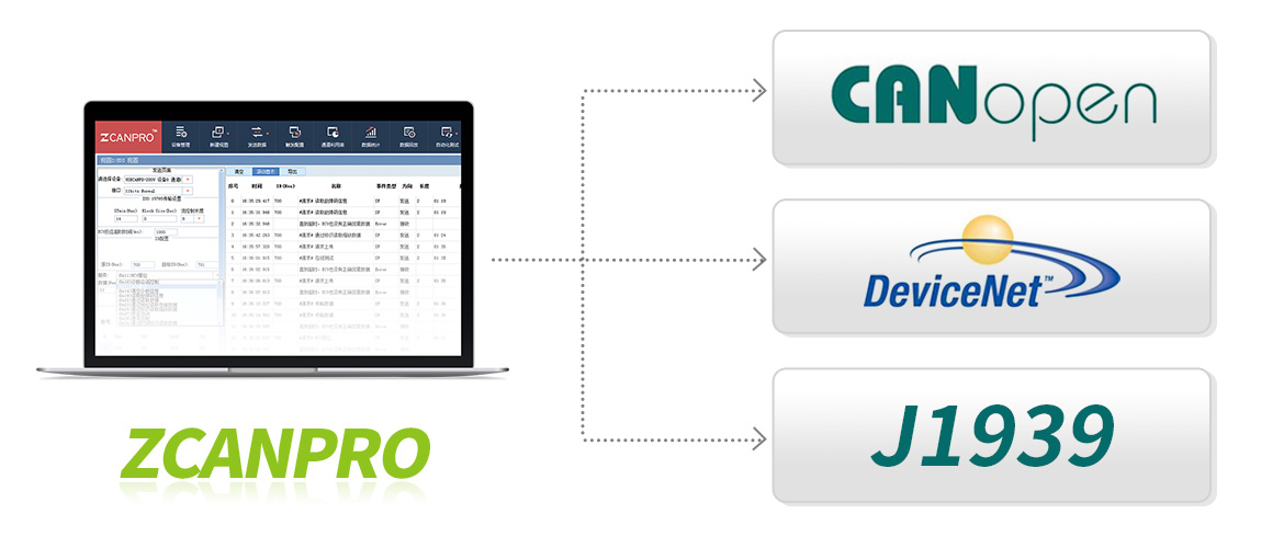 ZCANPRO software inherits ZLG CANPro’s excellent support for CANopen, J1939, and DeviceNet protocols, and provides users with free analysis functions for the above three protocols.