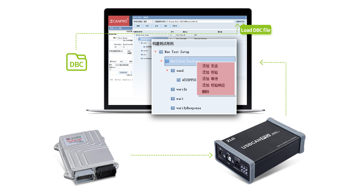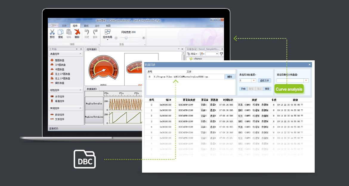 ZCANPRO software supports recording message playback function and can load DBC files for variable curve analysis.