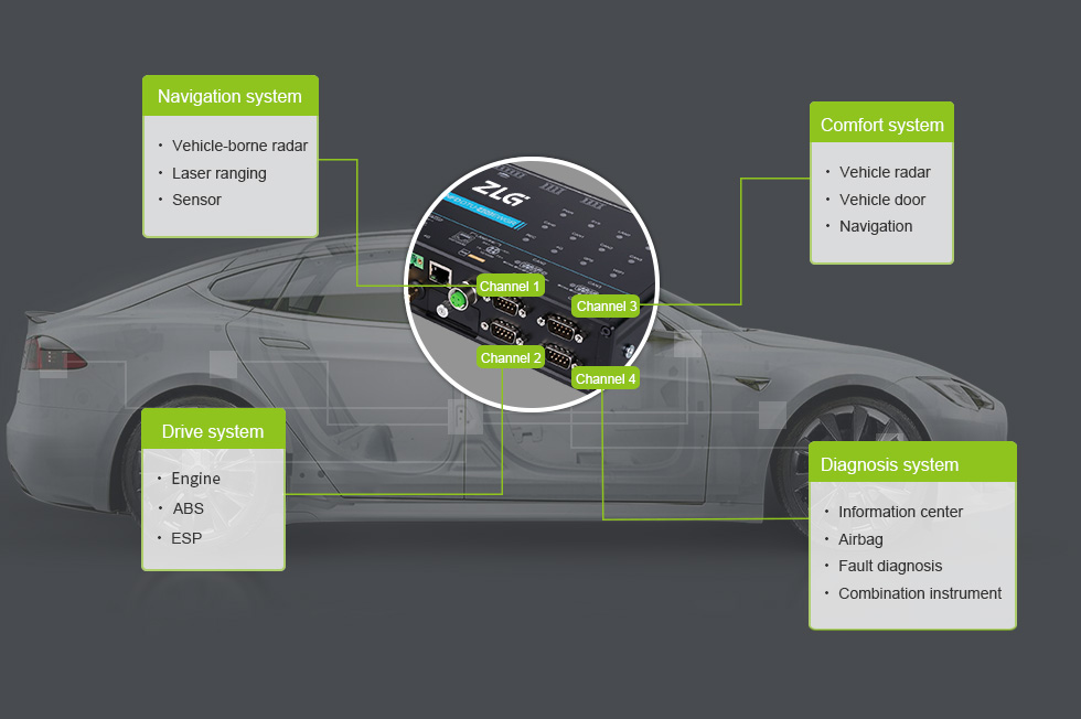 CANFDDTU-400EWGR can simultaneously record four channels of CANFD messages, and realize single-channel independent operation for each automobile functional domain, thus improving the richness of records.