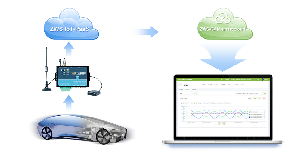 ZWS-CAN smart cloud platform is adapted to CANDTU series device, integrates remote data acquisition, cloud analysis and cloud debugging, and improves the efficiency of road test.