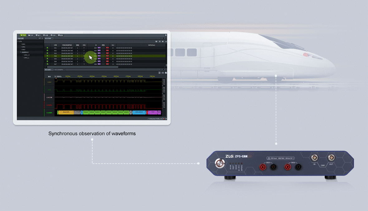 ZPS-CANFD perfectly integrates the development of automotive electronic platform, focusing on the measurement and testing of CAN FD, CAN and LIN buses of intelligent networked vehicles. It can efficiently complete the multi-level comparative analysis of the bus, analyze and display them from physical layer analog signal, digital logic signal, data link layer, protocol layer and application layer.