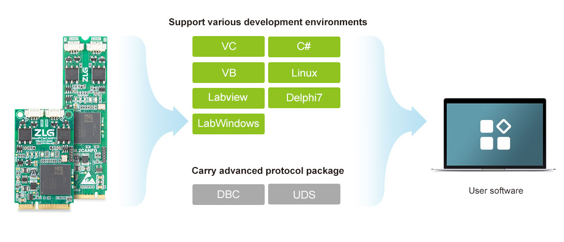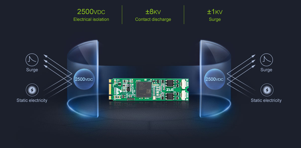 | Performance characteristics | High-performance industrial-grade CAN FD interface card, suitable for all kinds of complex networks, with super high forwarding rate. | ||