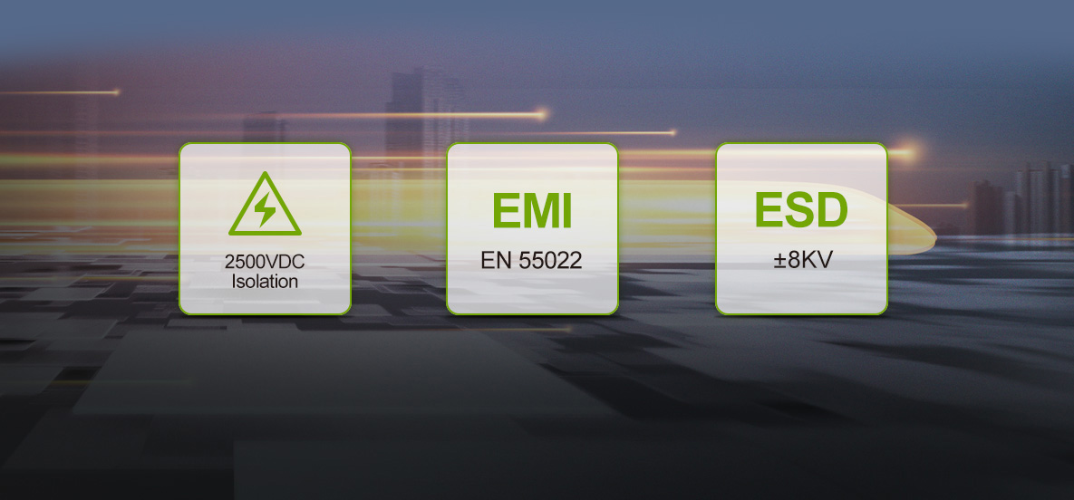 2-channel 2500VDC CAN interface are electrically isolated, and the electrostatic level contact discharge is ±8KV. It can be used in the environment with safety and explosion-proof requirements.