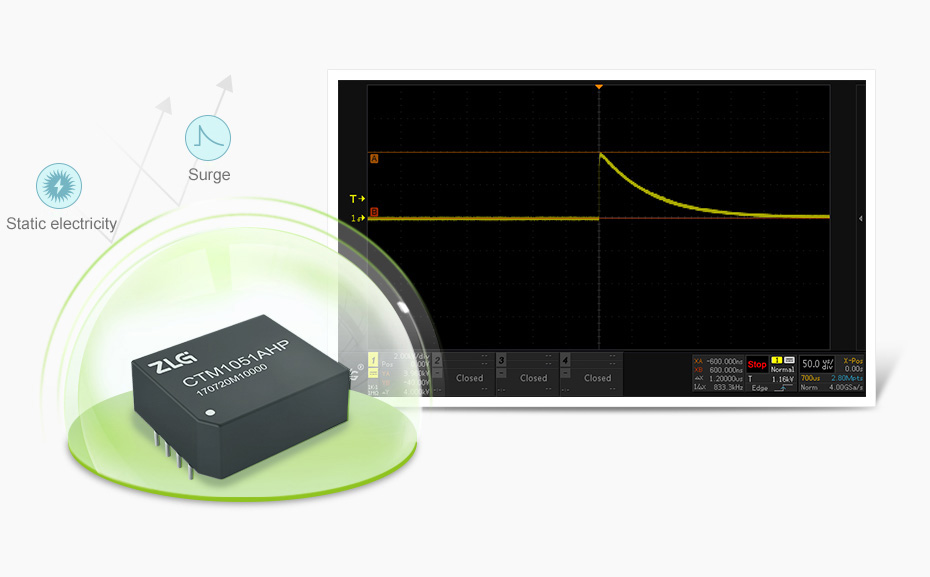 | CTM1051(A)HP | download | High surge protection | 3.3V ; 5V | 40K-1M | 2500VDC | 110 | -40~85 | Request samples | |