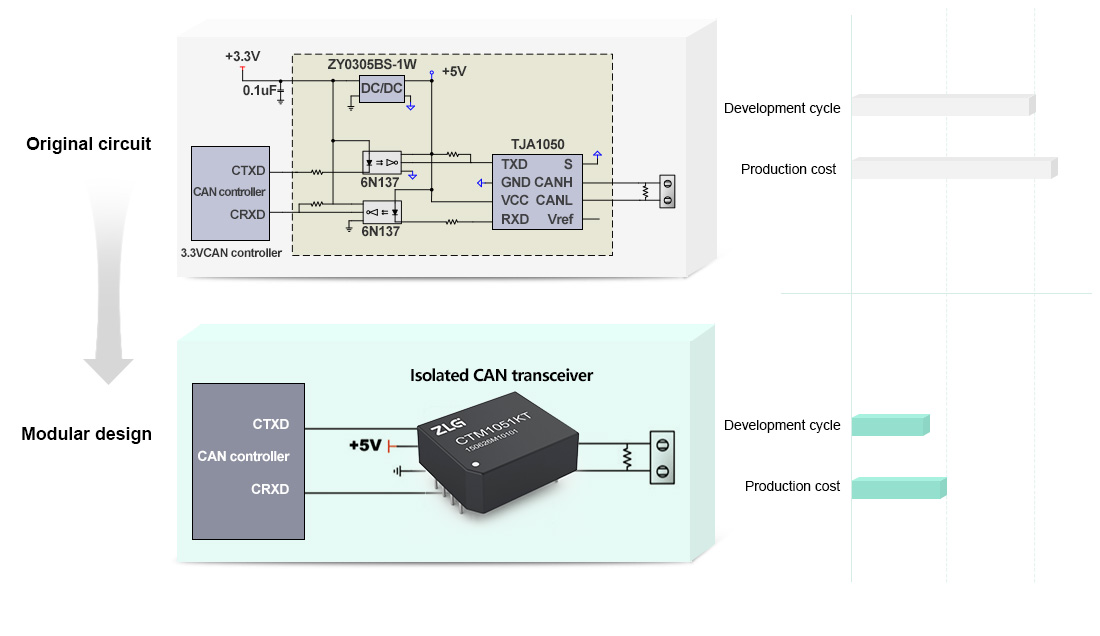 | CTM1051R(A)T | download | 5000VAC isolation voltage | 3.3V ; 5V | 40K~5M | 5000VAC | 110 | -40~105 | Request samples | |