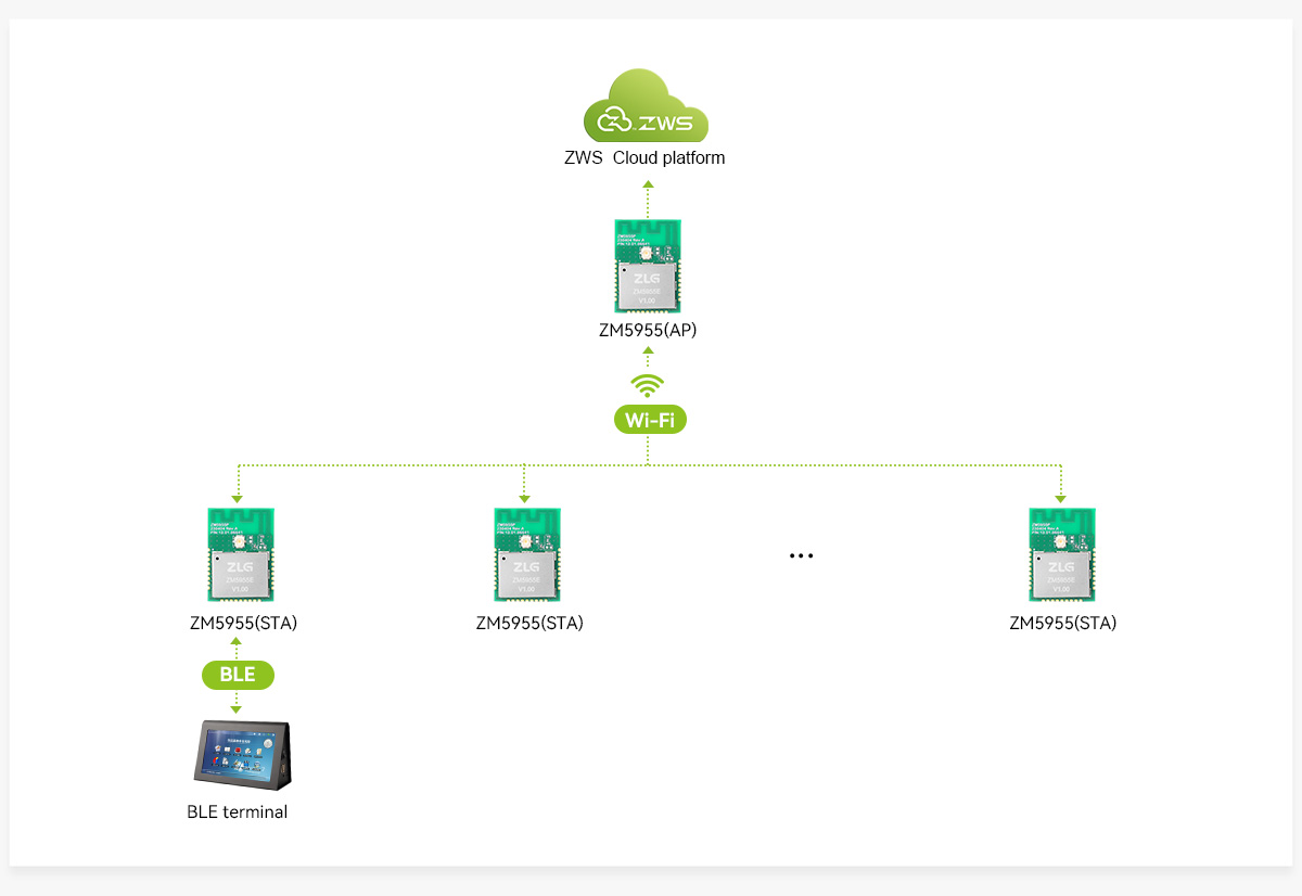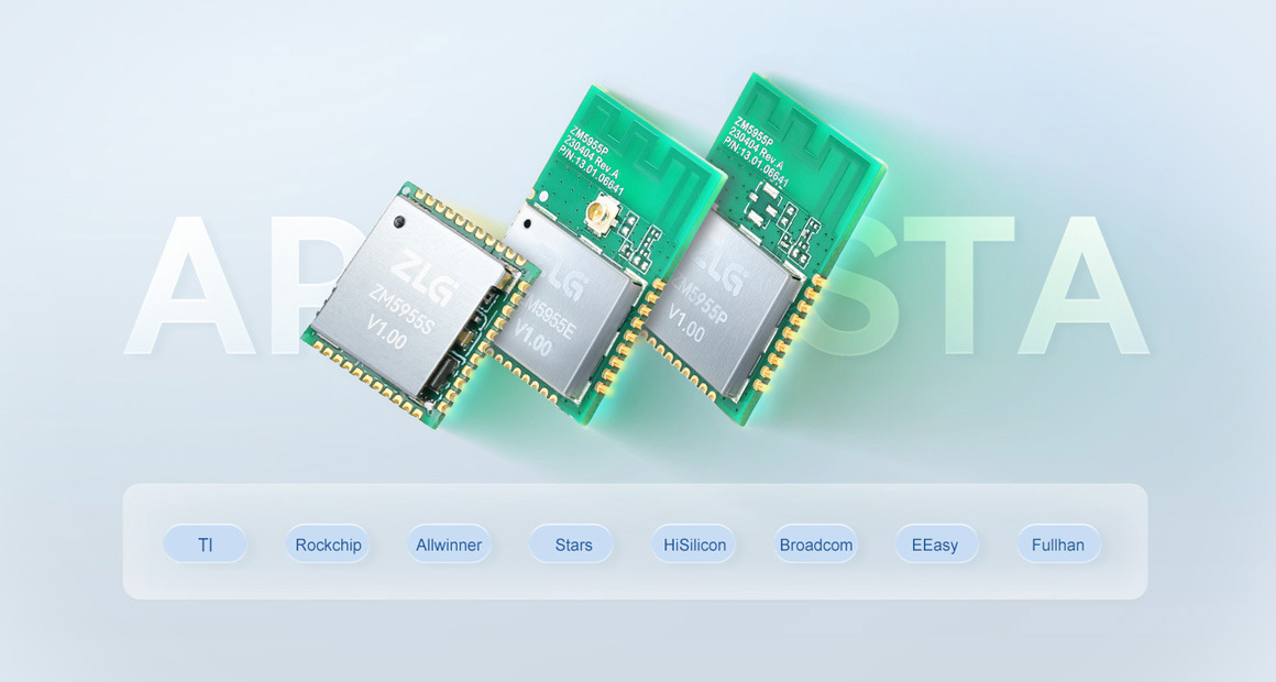 ZM5955 series transceiver Wi-Fi module is a high-performance and domestic Wi-Fi product developed by Zhiyuan Electronics. The product supports 2.4G Wi-Fi6 (802.11b/g/n/ax) of 1T1R and BLE 5.1 communication protocols, and simultaneous connection of two wireless protocols. The main function of the module is to transmit data transparently. It can support a physical layer rate of up to 195Mbit/s.